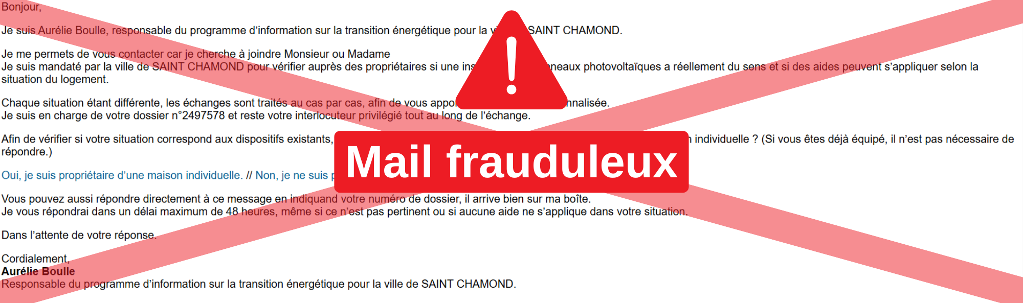 Plusieurs habitants ont récemment reçu un courriel concernant l’installation de panneaux photovoltaïques. Ce message prétend provenir d’un représentant de la mairie.