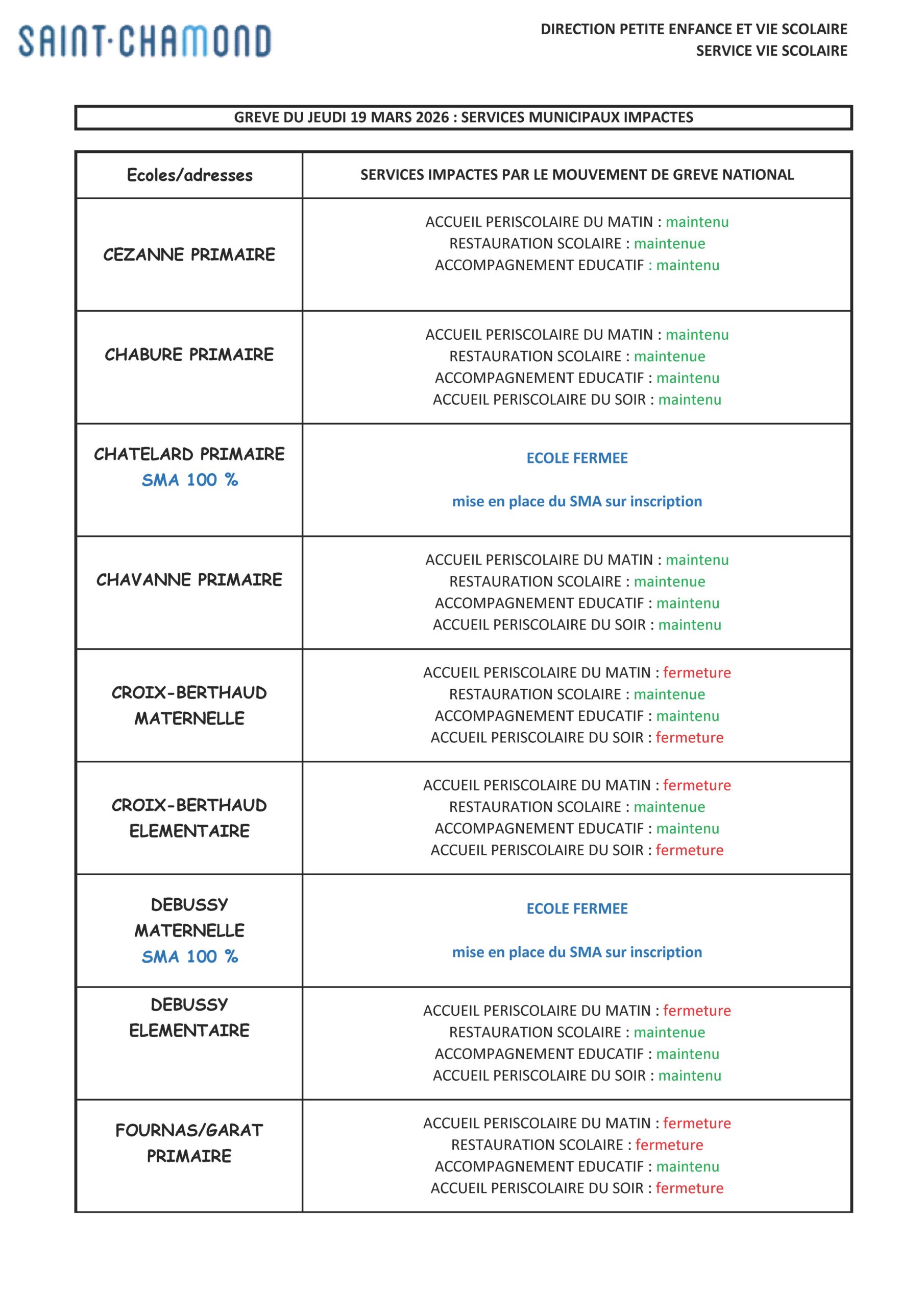 Indépendamment de notre volonté, un mouvement de grève est annoncé pour la journée du jeudi 19 mars 2026.