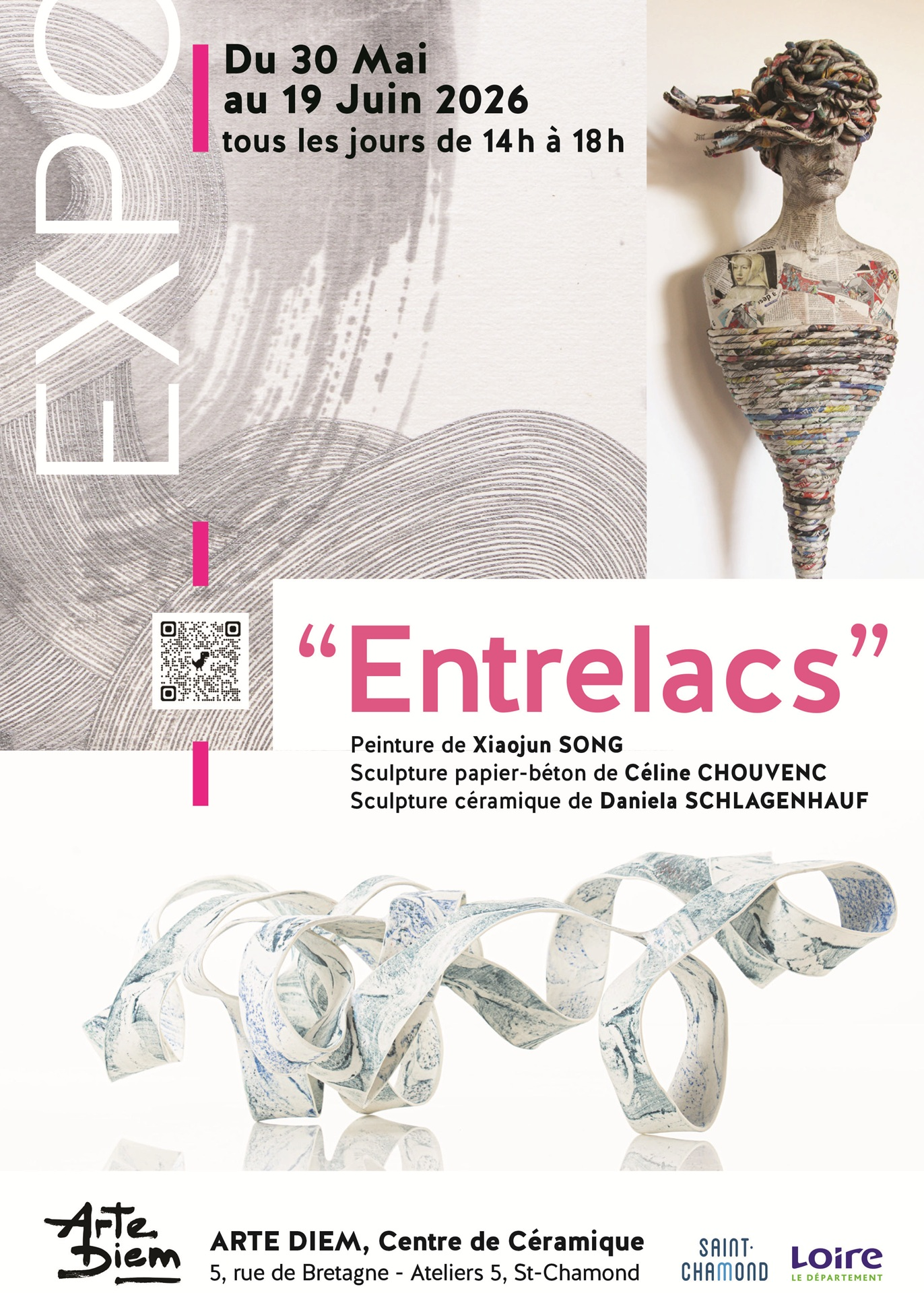 L’Exposition « ENTRELACS » sera présentée du 30 Mai au 19 Juin 2026 à Arte Diem, ouverte tous les jours de 14h à 18h !