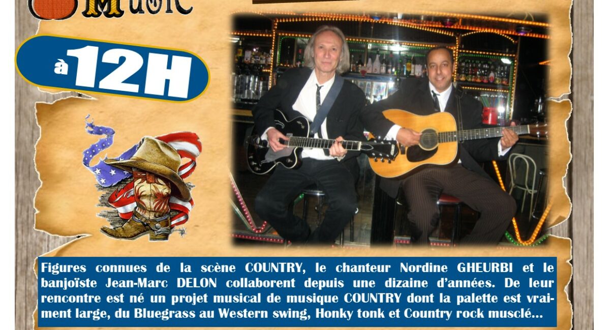 Figures connues de la scène country, le chanteur Nordine Gheurbi et le banjoïste Jean Marc Delon collaborent depuis une dizaine d’années. De leur rencontre est née un projet musical de musique country dont la palette est vraiment large du bluegrass au western swing, honky tonk et country rock musclé…