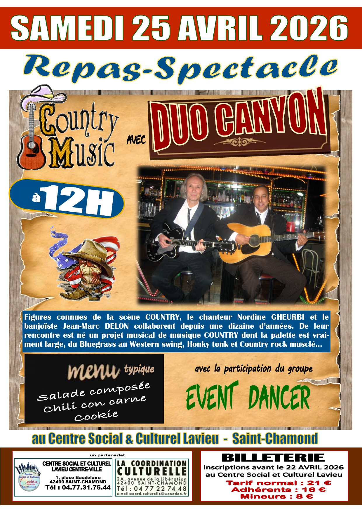 Repas/Spectacle – Country Music avec Duo Canyon