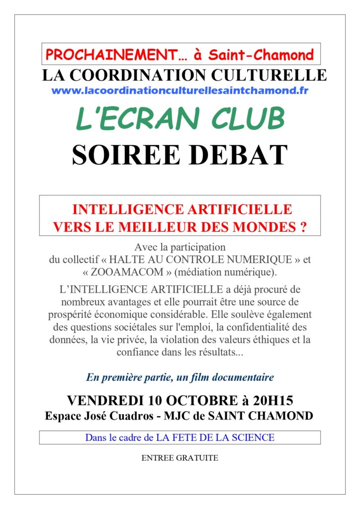 Soirée débat / Intelligence Artificielle, vers le meilleur des mondes ?