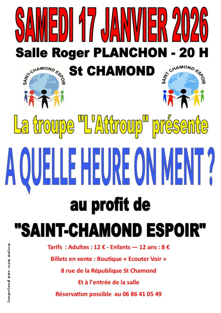Le samedi 17 janvier 2026, à 20 h, salle Roger Planchon à St Chamond, l’association humanitaire