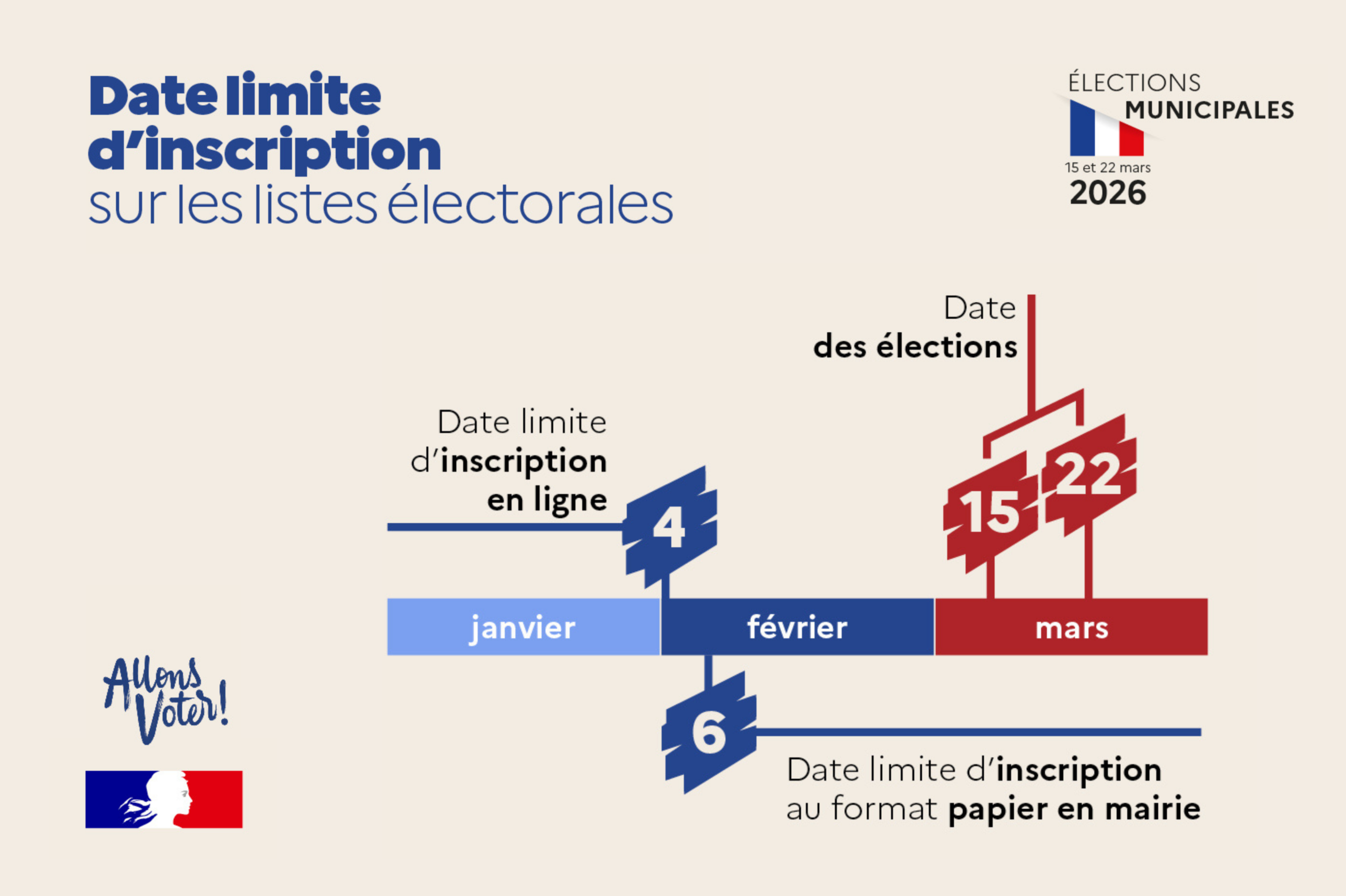 Les prochaines élections municipales auront lieu les 15 et 22 mars 2026. Pour voter, il faut être inscrit sur les listes électorales.